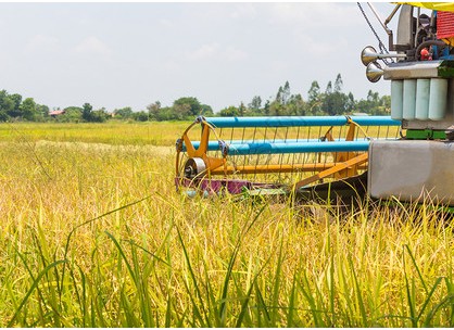 • 拖拉機(jī)和收割機(jī)在農(nóng)場(chǎng)收大米